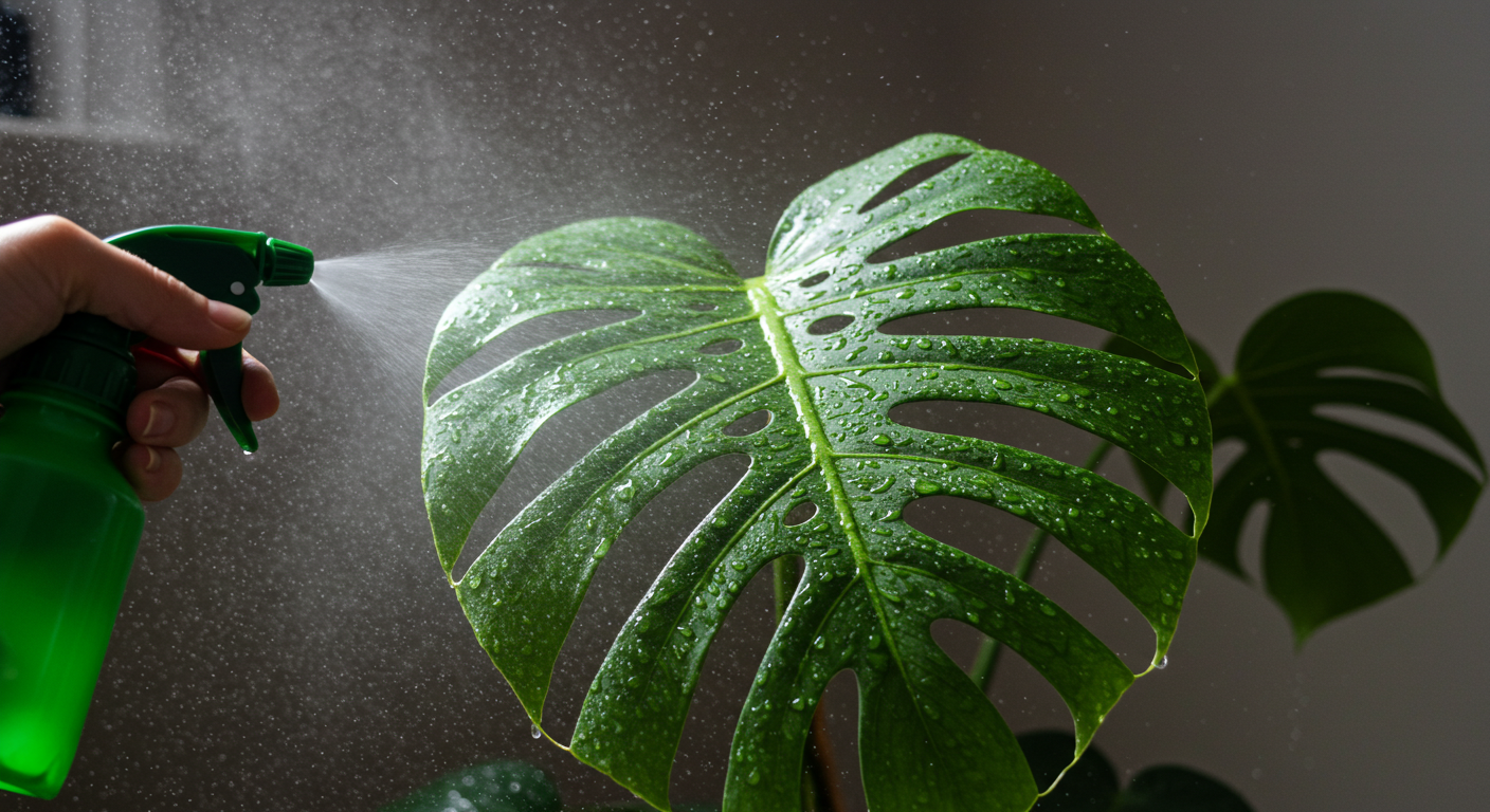 그리고 몬스테라는 습도가 좀 높은 걸 좋아해. 너무 건조하면 잎끝이 마르거나 병충해가 생기기 쉬워. 특히 겨울철 난방으로 실내가 건조해지기 쉬운데, 이때는 가끔 잎에 스프레이로 물을 뿌려주거나(잎에 먼지도 닦아줄 겸!), 아니면 식물 근처에 가습기를 틀어주는 것도 좋은 방법이야. 너무 건조하지만 않게 신경 써주면 돼.