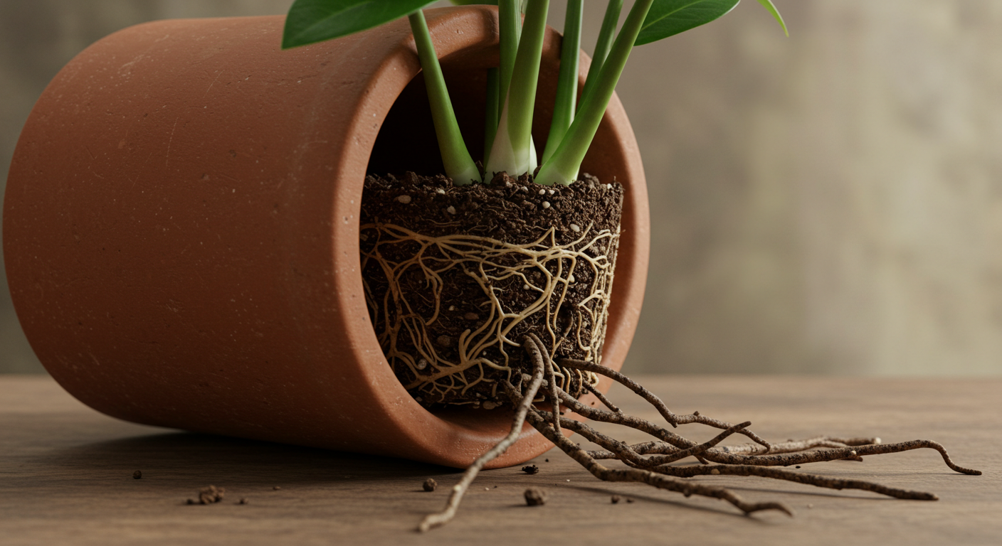 3. 뿌리 상태 점검: 검은 뿌리는 제거하고 신선한 흙에 재식