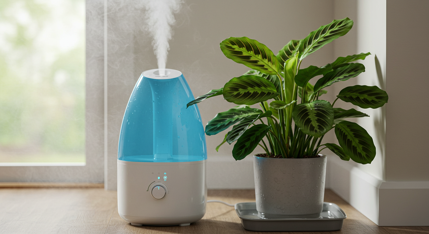 고습도 환경을 좋아하는 열대 식물이야. 특히 겨울에는 건조해지기 쉬우니 가습기를 사용하거나 트레이에 물과 자갈을 받쳐 습도를 높여줘. 잎에 분무해주는 것도 도움이 되지만, 너무 자주 하면 곰팡이 발생 위험이 있으니 적당히 해.