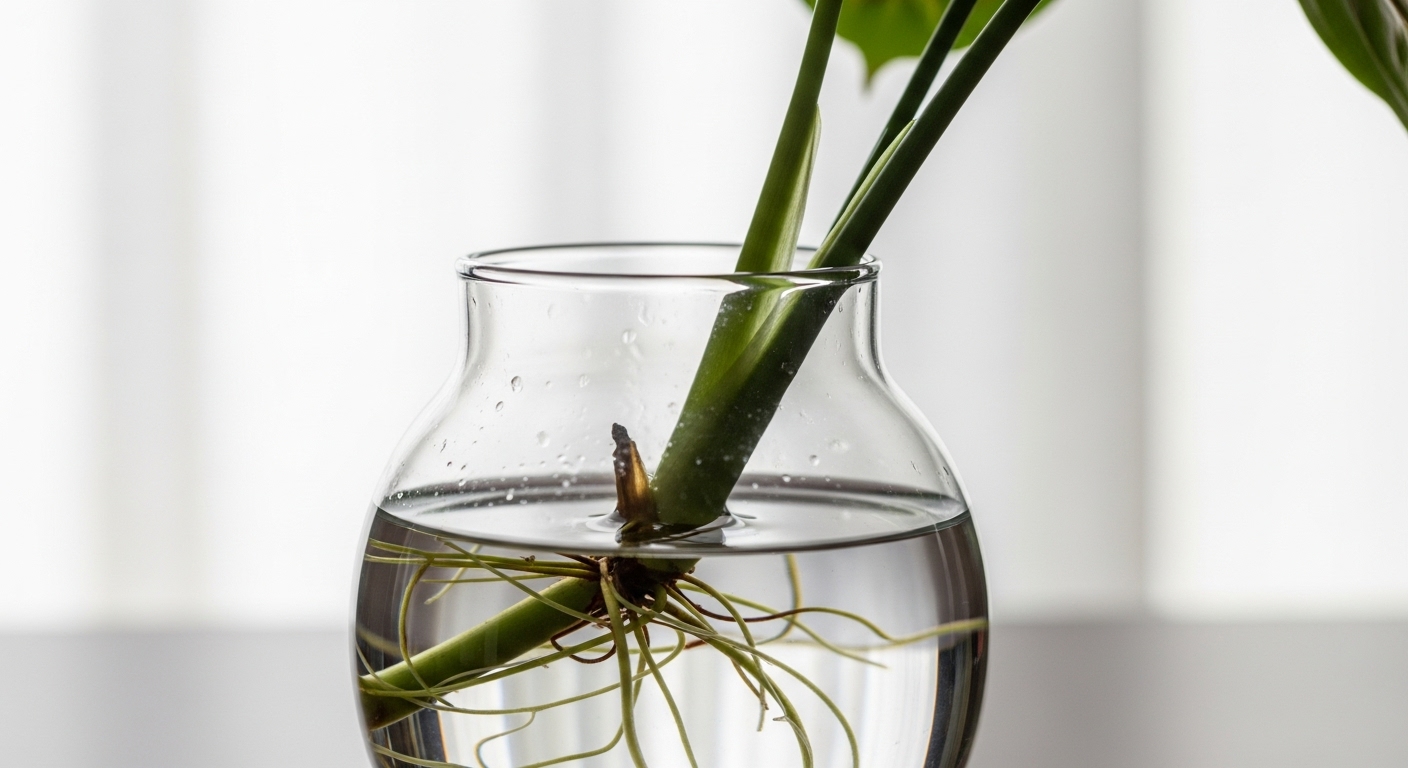 마란타는 줄기를 잘라서 물꽂이로 쉽게 번식할 수 있어. 건강한 줄기를 10cm 정도 잘라 물에 담가두면 2~4주 안에 뿌리가 나와. 뿌리가 충분히 자라면 흙에 옮겨 심으면 돼.