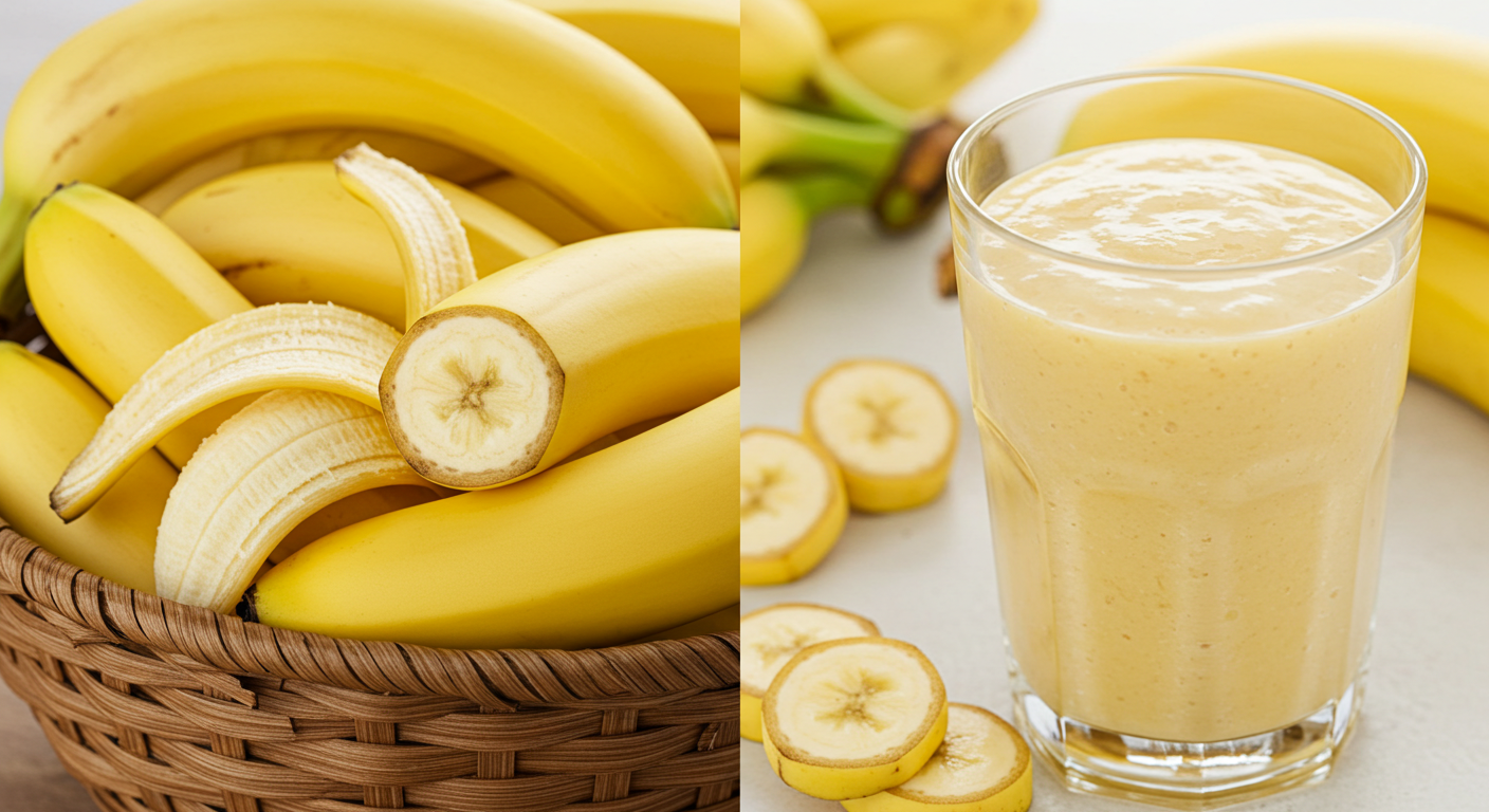바나나 스무디: 우유나 요구르트와 함께 갈아서 스무디로 만들면 더욱 부드럽게 섭취할 수 있어.