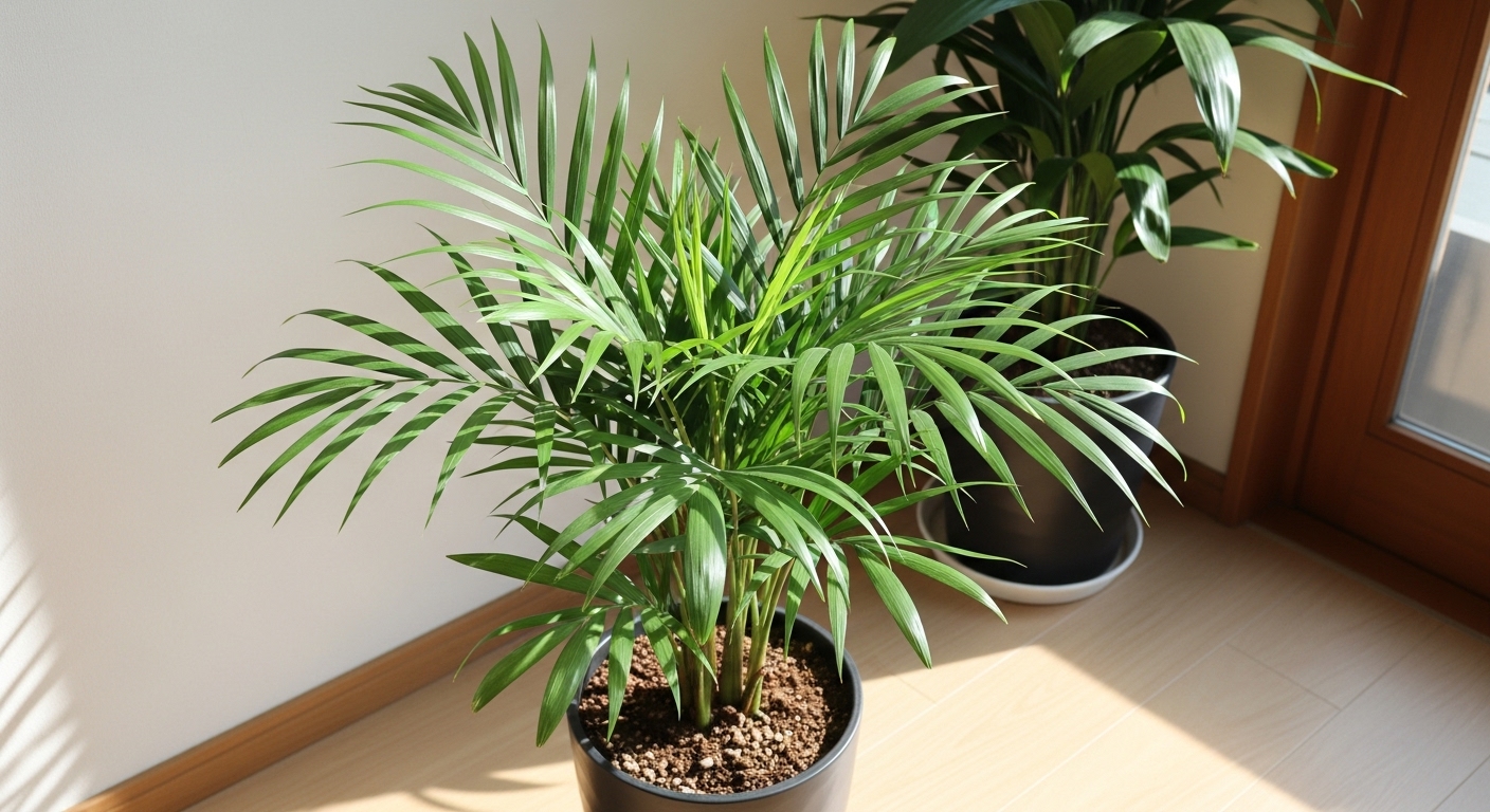 아레카 야자는 밝은 곳을 좋아하지만, 뜨거운 직사광선은 잎을 태울 수 있으니 피해야 해. 커튼을 통해 들어오는 부드러운 간접광이 가장 좋고, 실내에서도 통풍이 잘 되는 밝은 창가 쪽이 안성맞춤이야.
