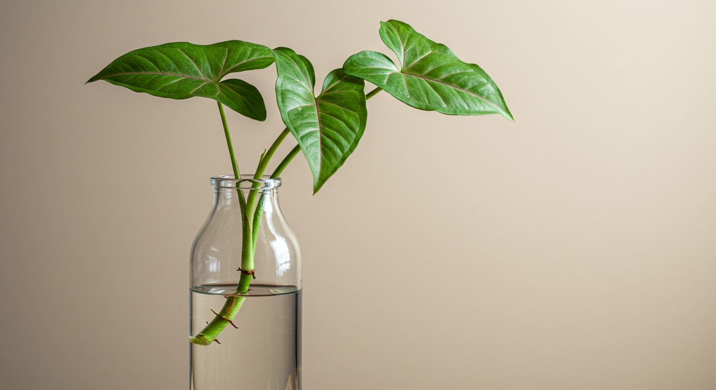 싱고니움은 물꽂이가 정말 잘 돼. 줄기를 자를 때 마디를 포함해서 잘라줘. 잎이 2~3개 정도 있는 마디 부분을 깨끗한 물에 담가두면 며칠 뒤에 뿌리가 나오기 시작할 거야. 뿌리가 2~3cm 정도 자라면 흙에 심어주면 돼. 이렇게 번식하면 친구나 지인에게 선물하기도 좋지!