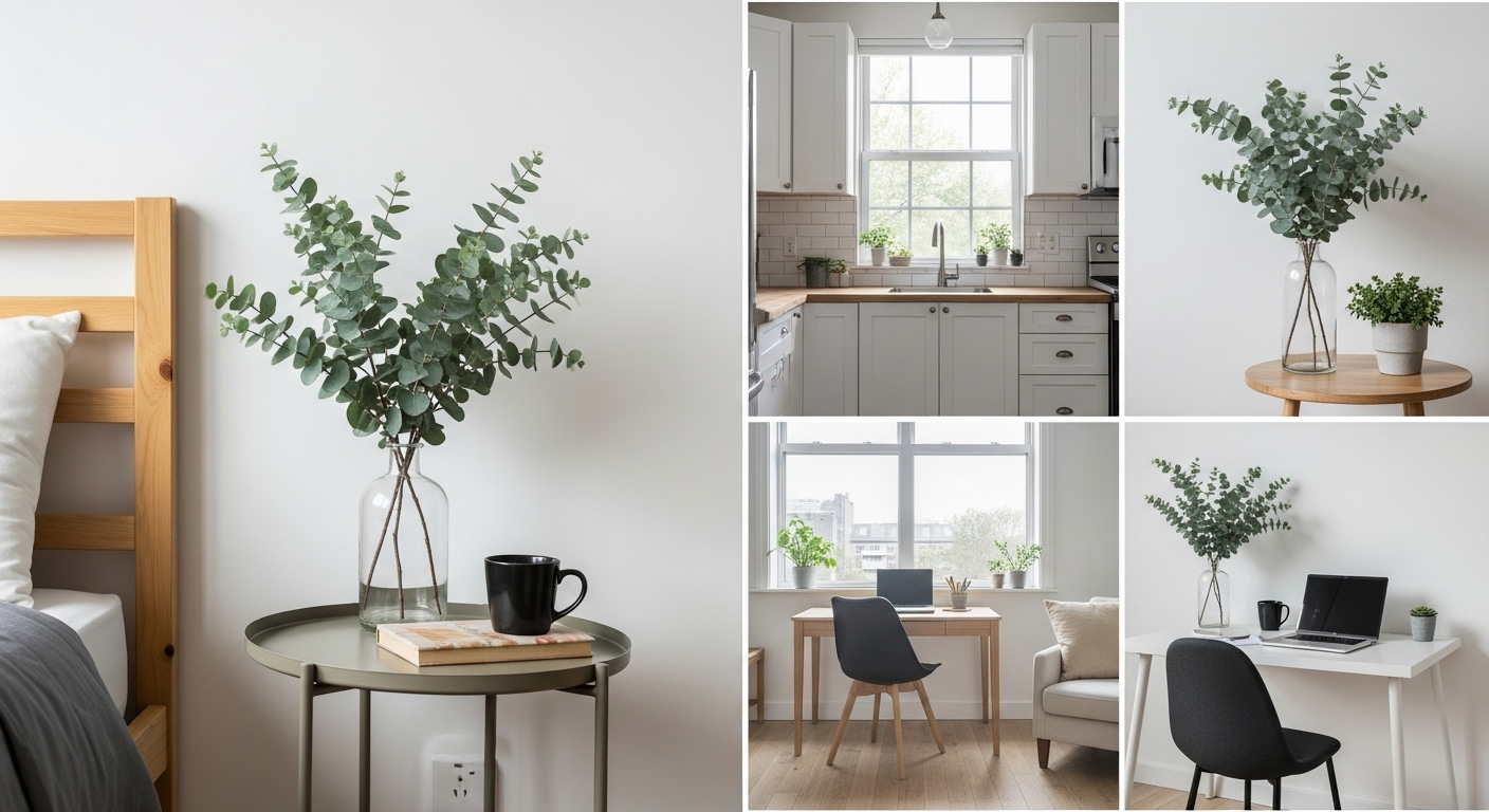 유칼립투스는 그 자체로도 멋진 인테리어 소품이 될 수 있어. 향긋한 향기까지 더해지니 일석이조지!