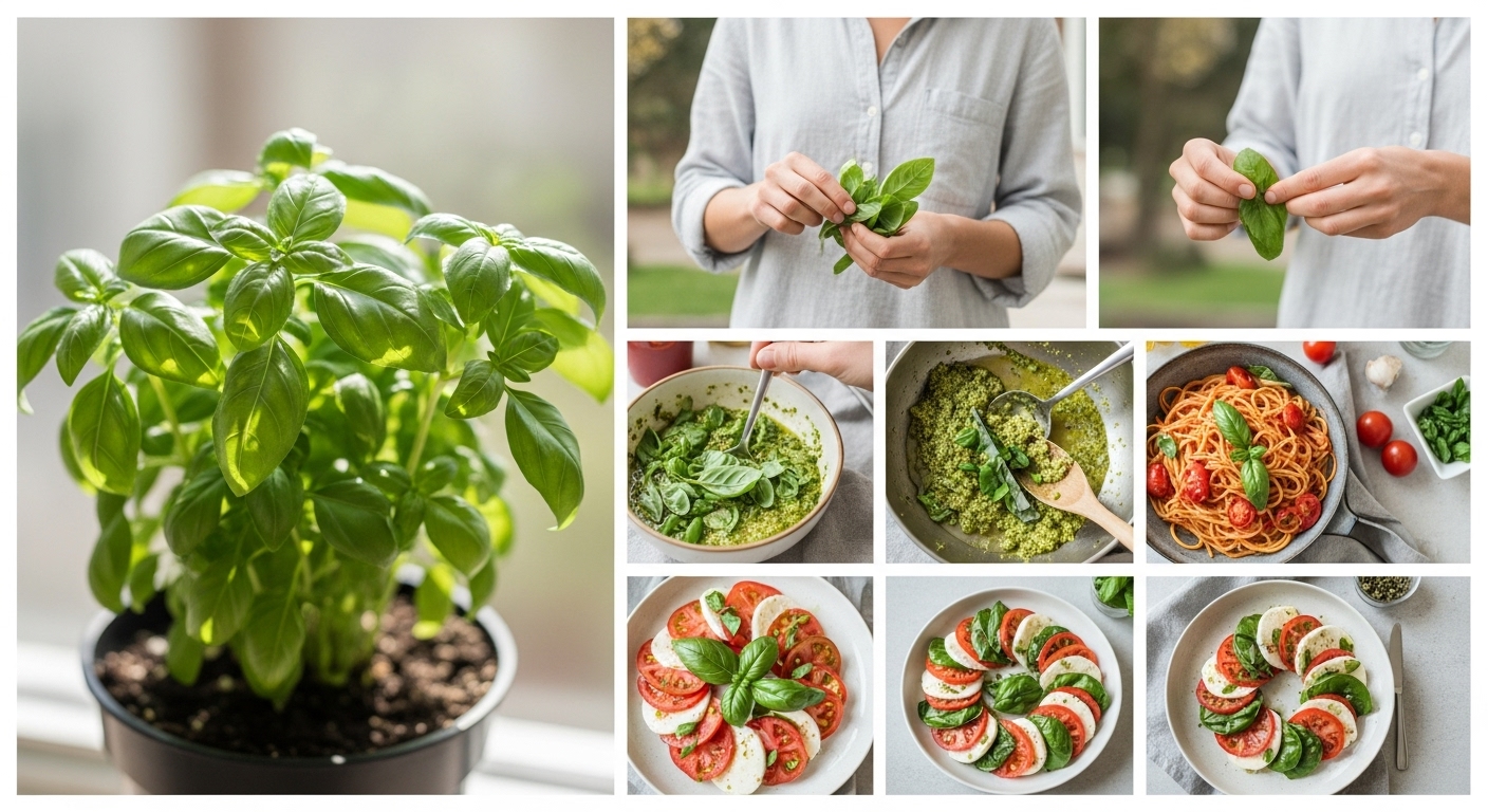 바질은 수확하면 할수록 더 잘 자라. 필요한 만큼 아낌없이 따서 요리에 활용해 봐. 수확할 때는 줄기 중간 부분을 가위나 손으로 잘라주는 게 좋아. 너무 아랫부분을 자르면 새순이 나오기 어려울 수 있으니 주의해.