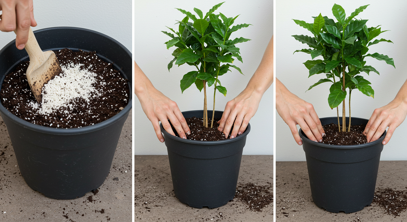 커피나무는 물 빠짐이 좋은, 즉 '배수가 잘 되는 흙'을 좋아해. 시중에서 파는 분갈이용토만 그냥 사용하기보다는 몇 가지 재료를 섞어주면 훨씬 좋은 환경을 만들어 줄 수 있어.